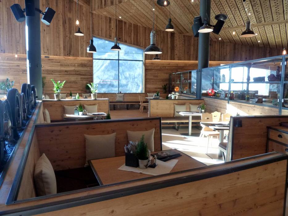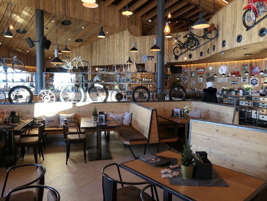 Neues Restaurant mit moderner Gemütlichkeit und einer großen Speisenauswahl. Hier wird auch Pizza aus dem Holzofen angeboten. An kalten Tagen wärmt der Kamin und bei schönem Wetter lockt die große Sonnenterrasse. Im Top Mountain Crosspoint begeistert zudem das höchstgelegene Motorrad-Museum Europas. Bereits im Restaurant werden Exponate des Museums ausgestellt. Im Gebäude startet auch die Kirchenkarbahn.