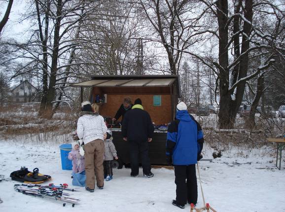 Ein kleiner Kiosk bietet heiße Getränke und Snacks neben der Talstation an.