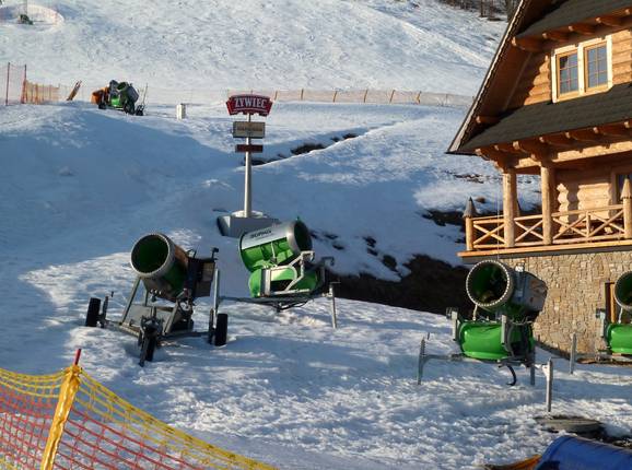 Das komplette Skigebiet kann beschneit werden. Es ist jedoch sehr südseitig ausgerichtet und so endet die Saison im Frühjahr bereits meistens schon im März.