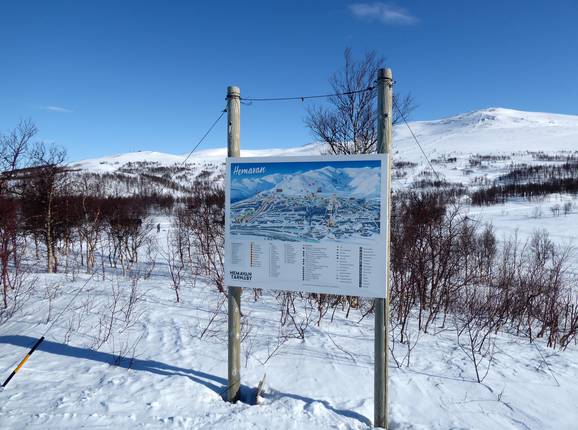 Im Skigebiet Hemavan gibt es an vielen Berg- und Talstationen große Pistenpläne. Die Pisten sind alle ausgeschildert und man findet sich gut zurecht. An einigen Liften sind handgeschriebene Informationen zu den geöffneten Liften aufgestellt.
