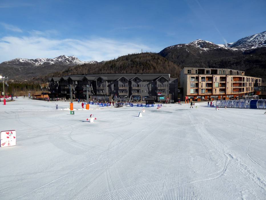 Das große Kinder‑ und Anfängergelände (Kinderland) im Skigebiet Hemsedal befindet sich direkt vor der SkiStar Lodge und bietet neben überdachten Förderbändern auch einige Tellerlifte. Hier ist der ideale Ort für die Kleinen, um den Wintersport in einer sicheren Umgebung zu lernen.