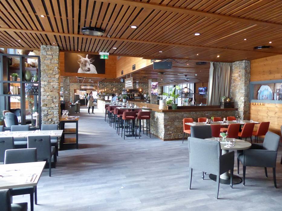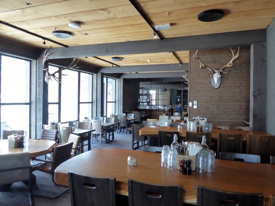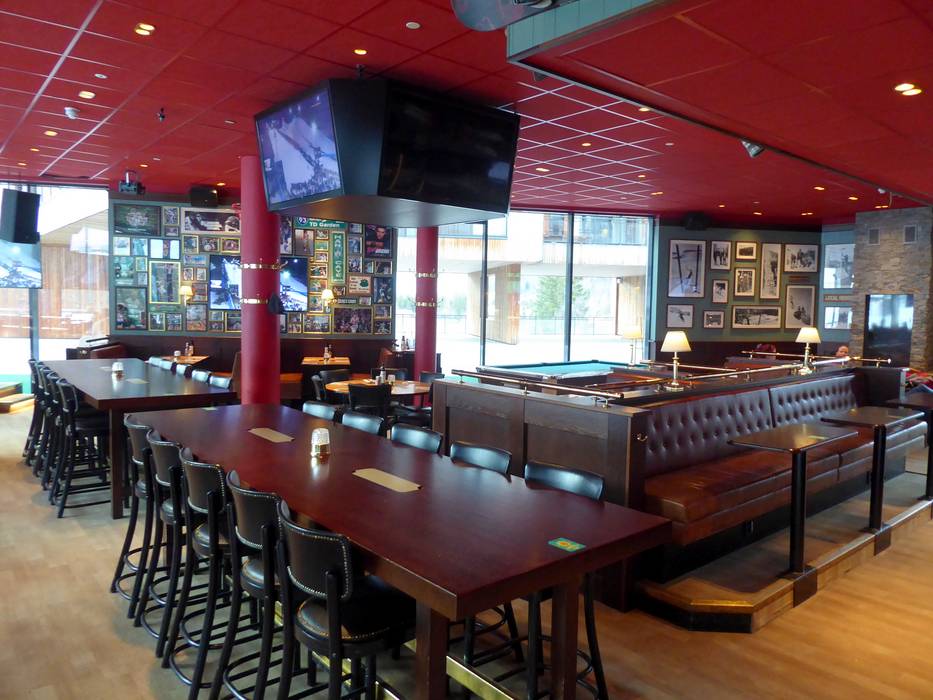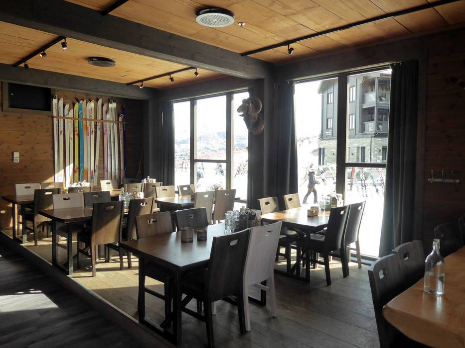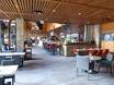 Das Restaurant ist modern, aber mit einem gemütlichen Touch. Die große Fensterfront bietet eine tolle Aussicht auf die Pisten. Es werden internationale Klassiker wie Pizza, Burger und Fish and Chips serviert. Ein Kindermenü rundet das Angebot ab. Nach dem Skifahren lädt die Bar auf einen Drink ein.