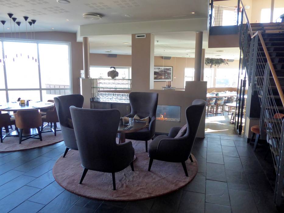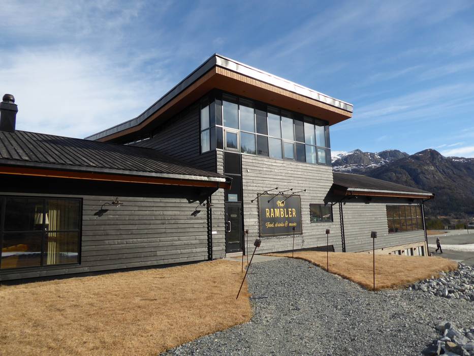 Das Restaurant Rambler serviert eine Mischung aus norwegischen Klassikern und internationalen Gerichten. Besonders beliebt sind die Burger, Fleischgerichte und vegane Optionen. An kalten Tagen wärmt ein offener Kamin. Bei schönem Wetter lockt die Sonnenterrasse.