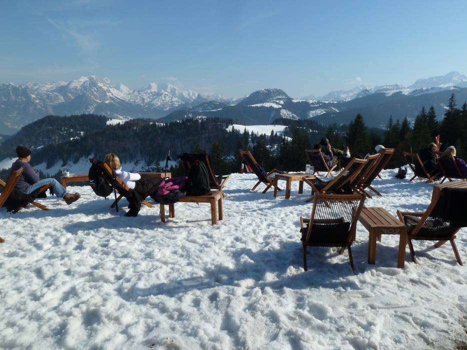 Die Skihütte Wildalm bietet ein gute Auswahl an Speisen und Getränken. Bei schönem Wetter kann man sich auf der Terrasse oder im Liegestuhl sonnen und das herrliche Bergpanorama genießen. In der Hütte findet man uriges Holz und einen knisternden Ofen.