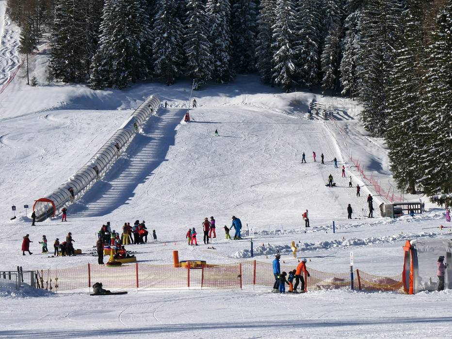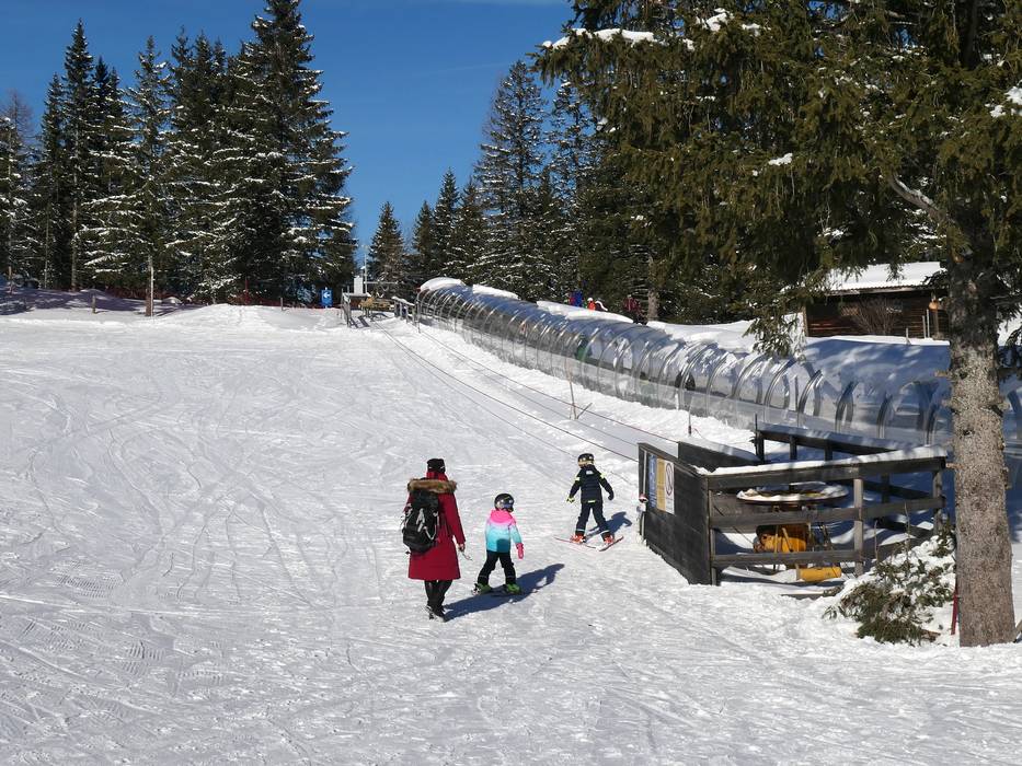 Der SnowTrail befindet sich rechts bei der Hirschkogelpiste im Bereich der Abzweigung zum Sonnkogel. Mit Wellenbahn, Steilkurven und Obstacles haben große und kleine Gäste richtig Spaß beim Skifahren und Snowboarden.