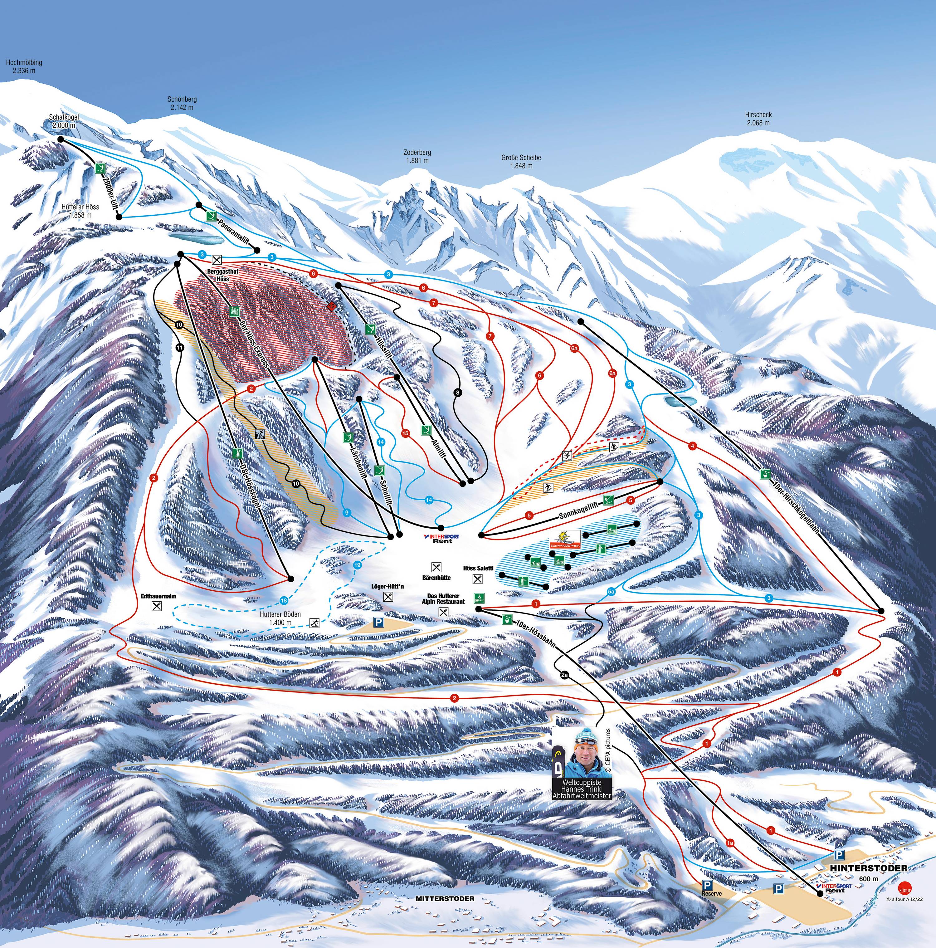 Orientierung (Pistenplan, Informationstafeln, Ausschilderung) und Sicherheit im Skigebiet Hinterstoder – Höss