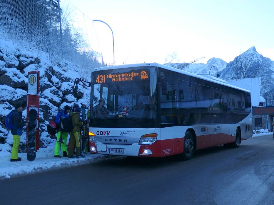 Vom Bahnhof Hinterstoder gelangt man mit dem Linienbus zur 10 Kilometer entfernten Talstation der Hössbahn. - Skibusse