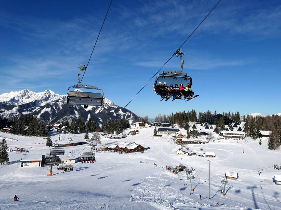 6er-Höss-Express und Hutterer Böden Blick auf das Hochplateau der Hutterer Böden Pisten mit Blick auf das Tote Gebirge