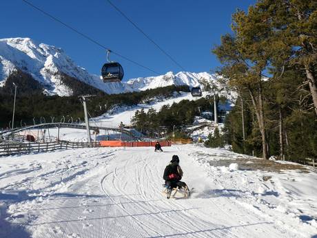 Das Skigebiet Hoch-Imst ist für Familien sehr gut geeignet. Die Übungswiese und das Kinderland der Skischule sind für kleine Anfänger ideal. Das übersichtliche Gelände, sanft geschwungene Hänge und moderne 10er-Gondelbahnen sorgen für ein familienfreundliches Skivergnügen. Die Preise sind fair. Die Rodelbahnen und der Alpine Coaster bringen Abwechslung. Für Kinder werden zu bestimmten Zeiten sogar Gratis-Skikurse angeboten.