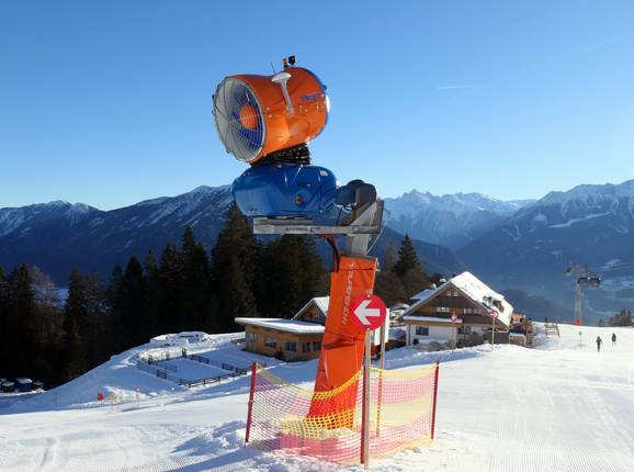 Das Skigebiet Hoch-Imst hat eine moderne und effiziente Beschneiungsanlage. Das sonnige Plateau oberhalb von Imst ist schneesicher.