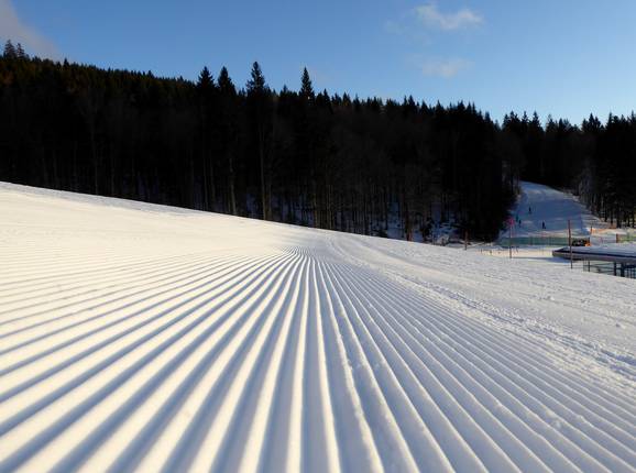 Fünf hochmoderne Pistenraupen präparieren täglich alle Pisten. Vor dem Nachtskifahren wird die Wenzelwiese immer in einen perfekten Zustand gebracht.