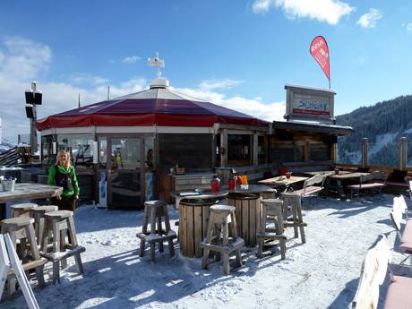 Im gesamten Skigebiet warten Schirmbars auf die Wintersportler. An den Talstationen kann man dann den Tag bei guter Musik in Schirmbars ausklingen lassen.