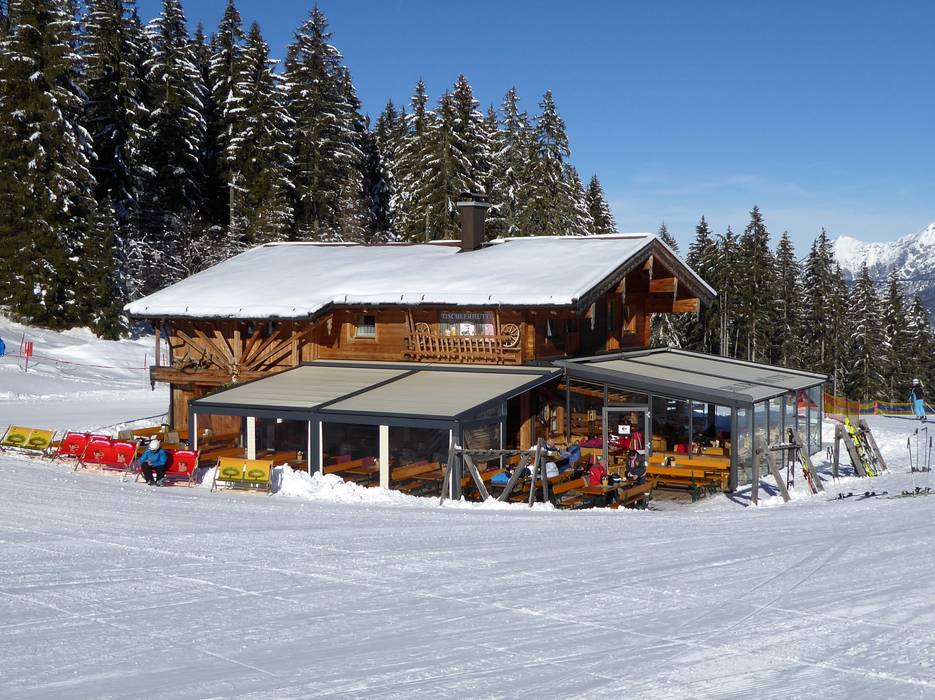 Die Tiergartenalm bietet Gemütlichkeit und Genuss am offenen Kamin und der großzügigen Terrasse. Ab dem frühen Nachmittag lädt die Schirmbar zum Après-Ski ein.