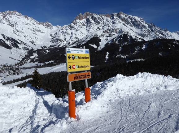 Die Ausschilderung auf den Pisten ist sehr gut. Es gibt ausreichend Informationstafeln, die Pisten sind durchnummeriert und entsprechend beschildert. An Abzweigungen gibt es ebenfalls Schilder. Die Königstour ist optimal ausgeschildert.