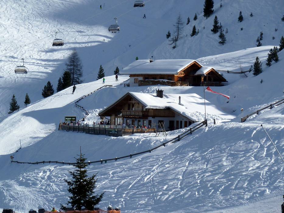 Die Kühtaile Alm ist eine urige Hütte mit Tiroler Schmankerl und großer Sonnenterrasse mitten im Skigebiet.