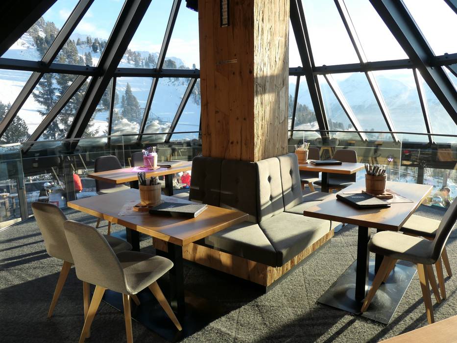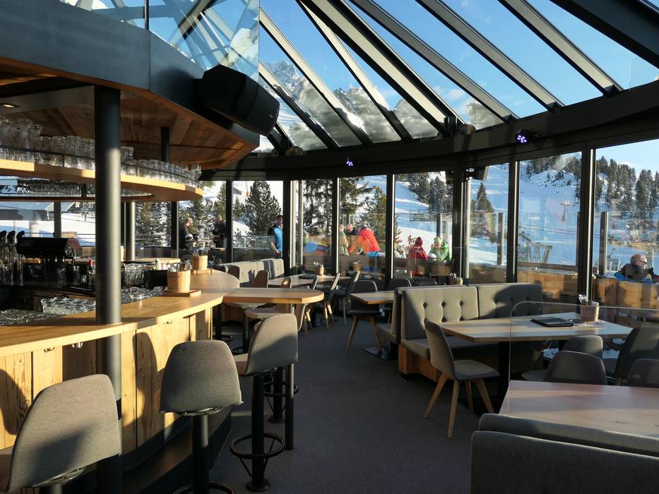 Die Kristall Bar ersetzte die bisherige Schirmbar beim Panoramarestaurant Hochoetz. Die moderne Bar im Parasol-Stil bietet 110 Sitzplätze. Im Bedienungsrestaurant werden allerlei Köstlichkeiten mit regionalem Bezug serviert. Tipp: Es werden auch sehr gute vegetarische und vegane Gerichte serviert.