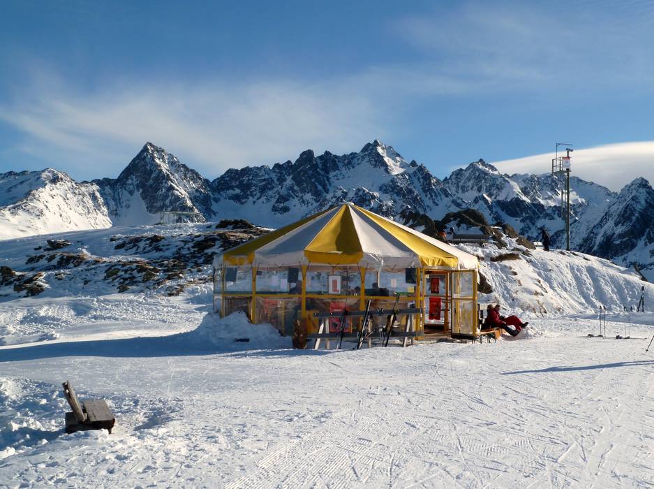 In der höchstgelegenen Schirmbar des Pitztals hat man eine herrliche Aussicht auf 1001 Gipfel. Tolle Stimmung und gute Musik sind garantiert.