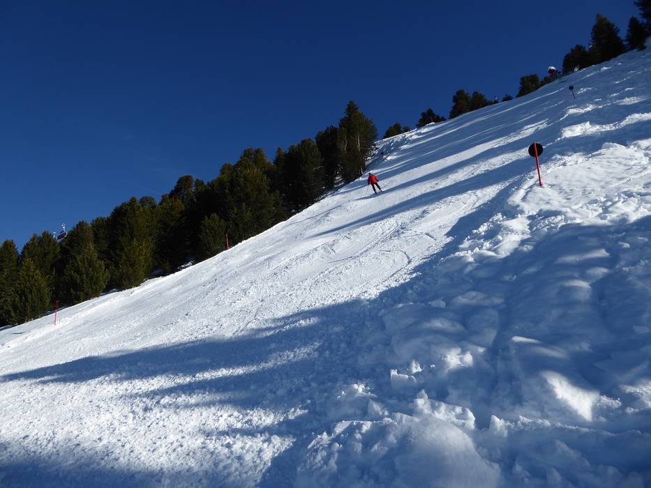 Die schwarze Piste verläuft entlang der Zirbenbahntrasse und hat ein Gefälle von bis zu 80 %. Sie zählt somit zu den steilsten Pisten in Österreich.
