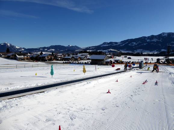 Christians Skischule bietet an der Talstation des Dorfliftes ein Kindergelände mit einem Seillift. Auf Matten und mit lustigen Figuren können die Kleinen die ersten Versuche sehr gut üben. Wer schon besser auf den Ski steht, der kann mit dem Seillift nach oben.