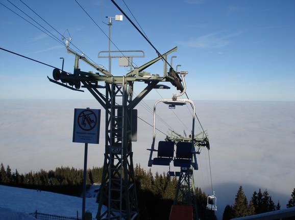 Eine nostalgische und einzigartige Doppelsesselbahn - beim Aussteig weichen die Sessel automatisch nach hinten aus - und ein Schlepplift erschließen das komplette Skigebiet.