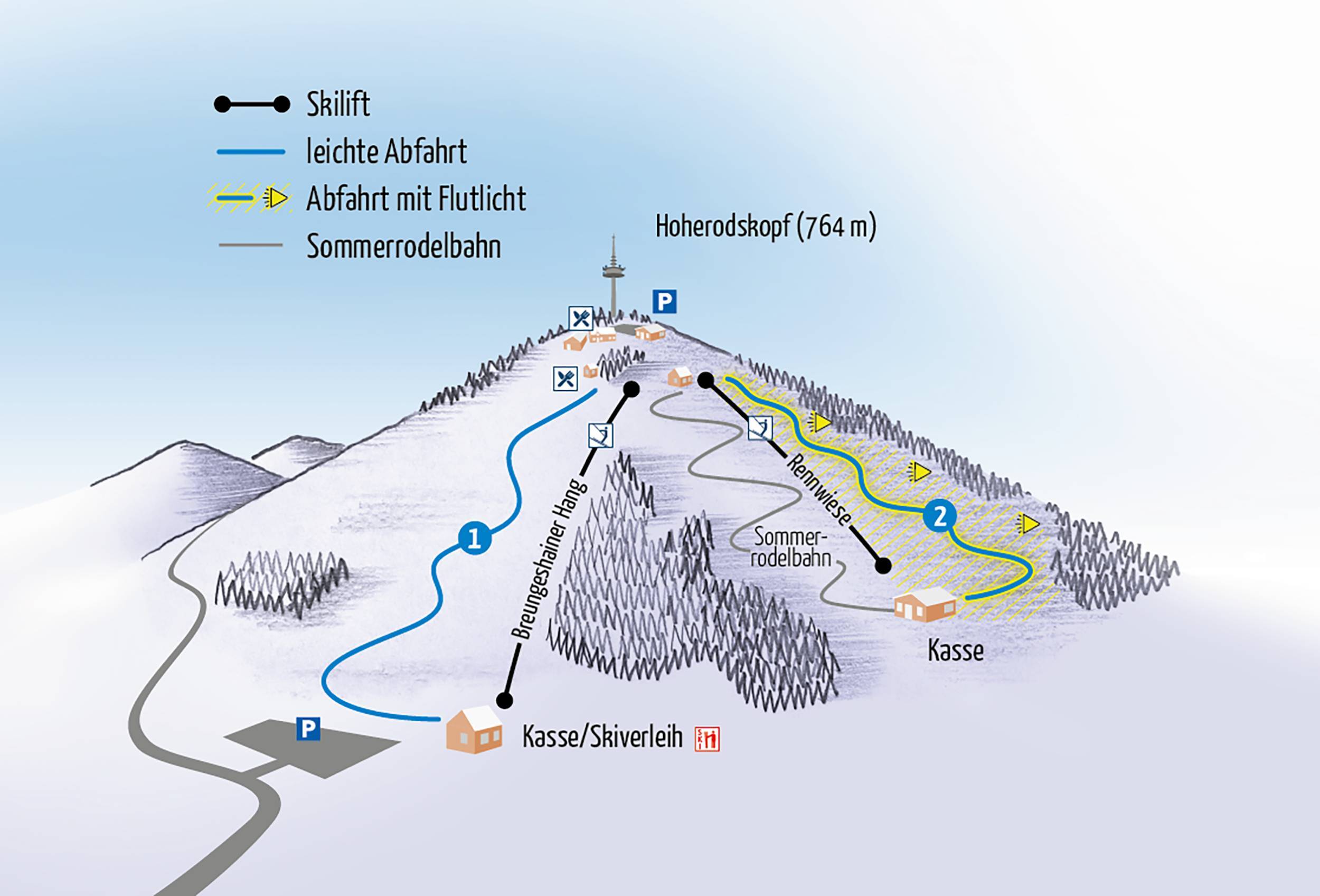 Breungeshain (0,5 km), Schotten (7 km) Orte am Skigebiet