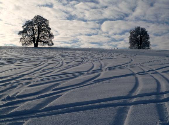 Die Skiroute führt über die äußerste Wiese.