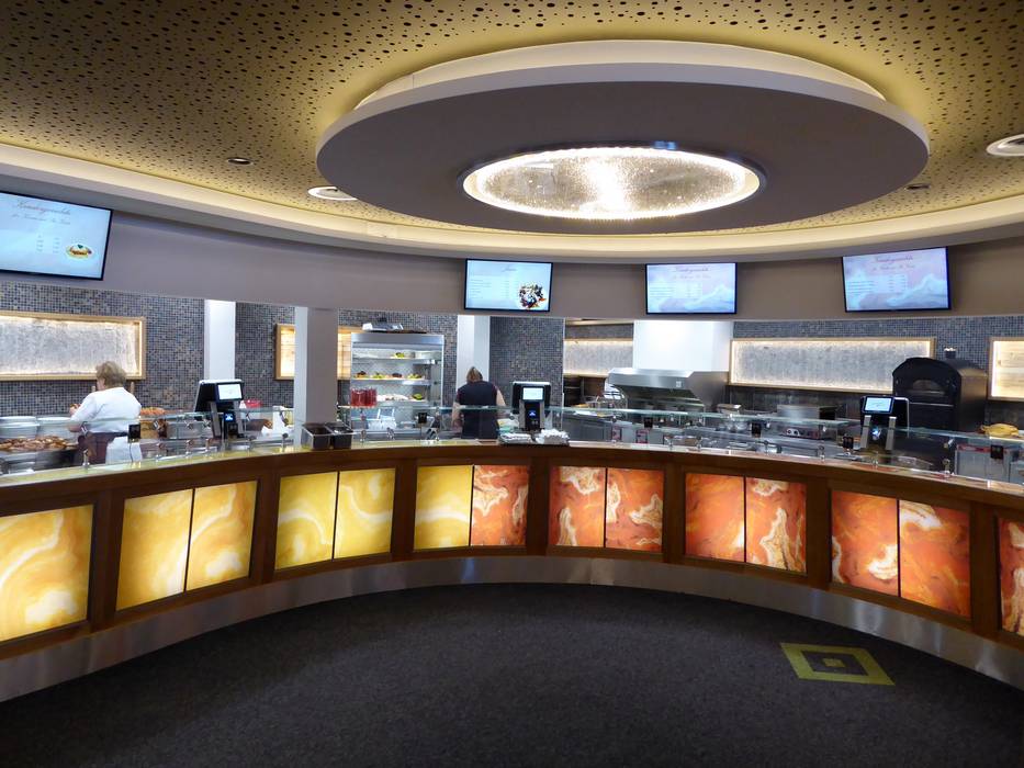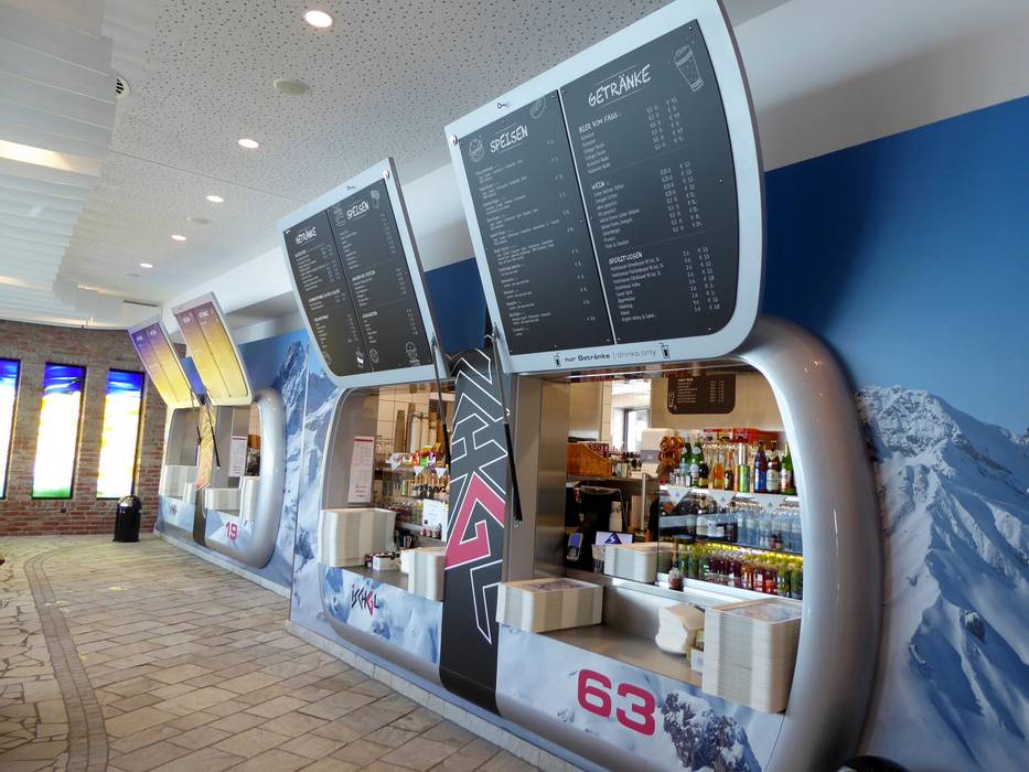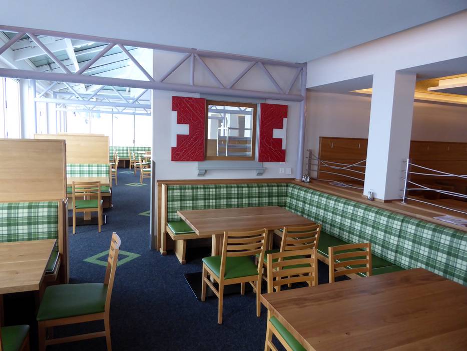 Das Restaurant Salaas bietet im oberen Stockwerk einen bedienten Teil mit Schweizer Spezialitäten. Es werden u.a. Fondue, Raclette und Steaks angeboten. Suppen, Salate und Nudelgerichte fehlen natürlich nicht. Zusätzlich gibt es noch ein Selbstbedienungsrestaurant mit großer Sonnendachterrasse und die Skyline Bar.