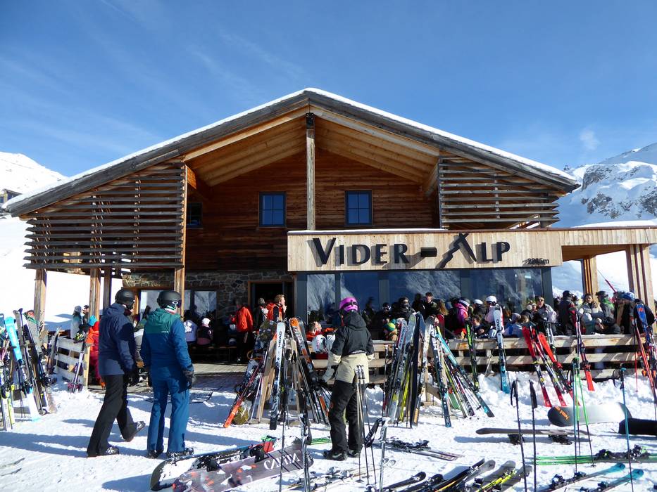 Die Vider Alp ist eine urige Skihütte mit Bedienung, Eisbar und großer Sonnenterrasse. In der gemütlichen Stube aus Altholz kann man Tiroler Spezialitäten genießen. Die Vider Alp ist auch beim Nachtrodeln geöffnet.