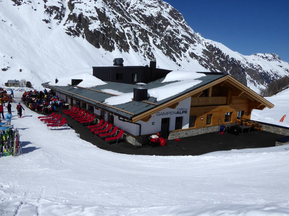 Die Gampenalpe wurde zur Saison 2018/19 komplett neu eröffnet und überzeugt mit typischem Hüttenflair und modernem Touch. Das Bedienungsrestaurant bietet Tiroler Spezialitäten. Zusätzlich gibt es noch einen Selbstbedienungsbereich. Die Vogelnestbar lädt zum Verweilen ein. Im Sommer wird der Kuhstall auf der Alpe bewirtschaftet.