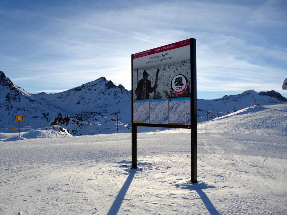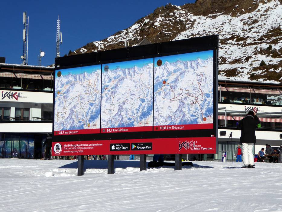 Orientierung (Pistenplan, Informationstafeln, Ausschilderung) und Sicherheit im Skigebiet Ischgl/​Samnaun – Silvretta Arena