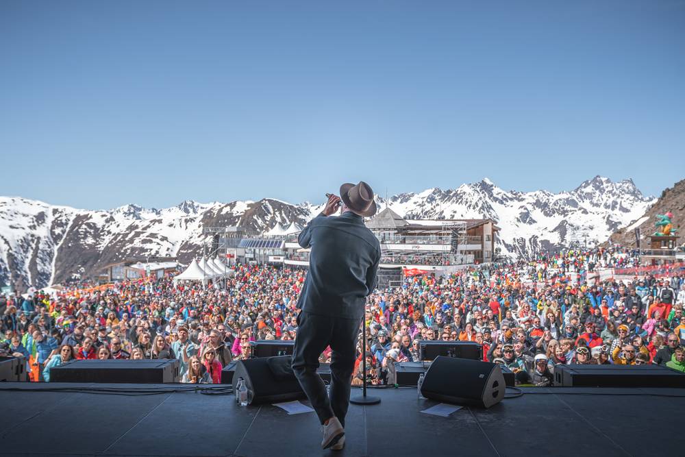 Willkommen im Spring Blanc in Ischgl! Hier erwarten dich strahlender Sonnenschein, perfekter Firnschnee und ein Konzert der Extraklasse mitten im Skigebiet auf 2.300 Metern Seehöhe. Seit 2022 bereichert das Top of the Mountain Spring Concert das Frühlingsangebot im Rahmen des Spring Blanc, als eine erfrischende Ergänzung zu den legendären Top of the Mountain Konzerten.