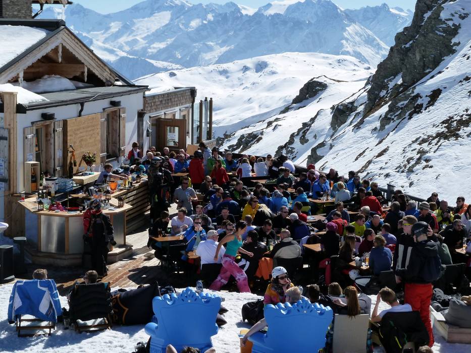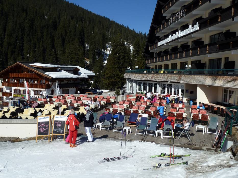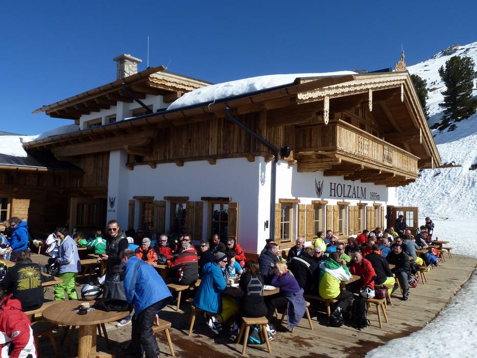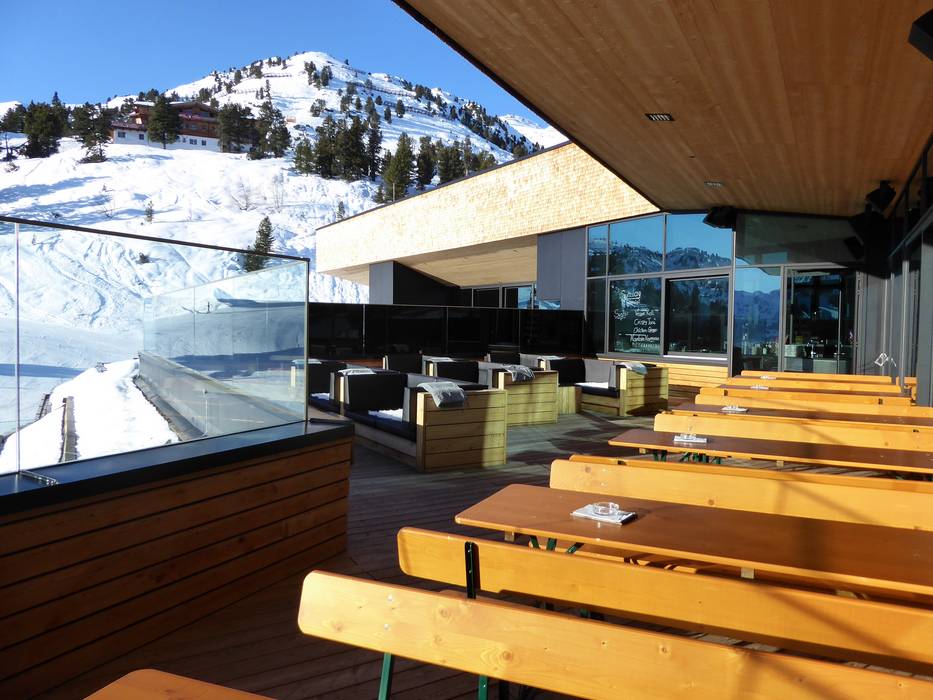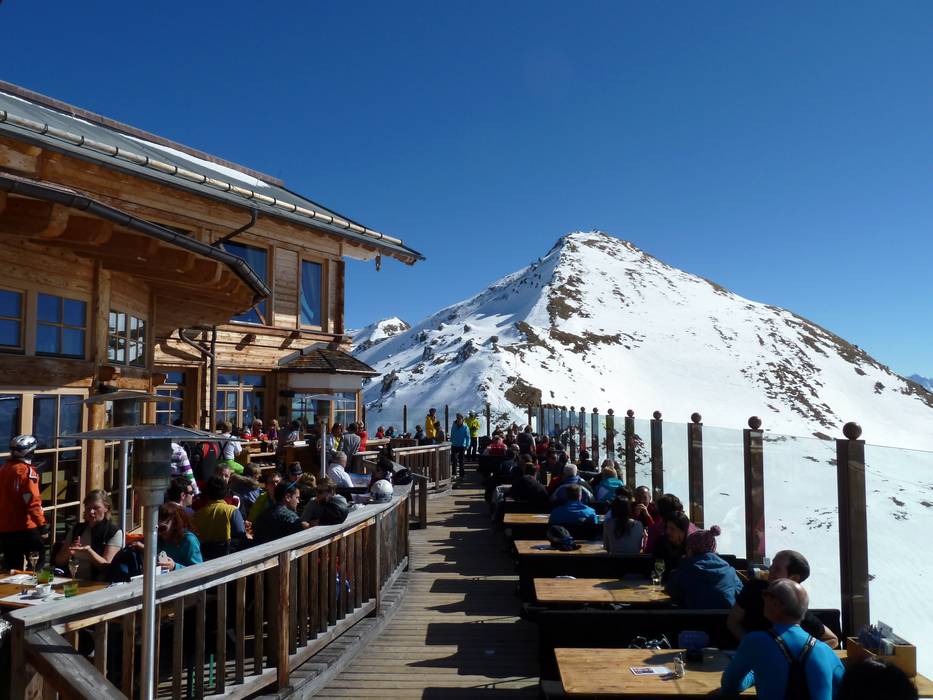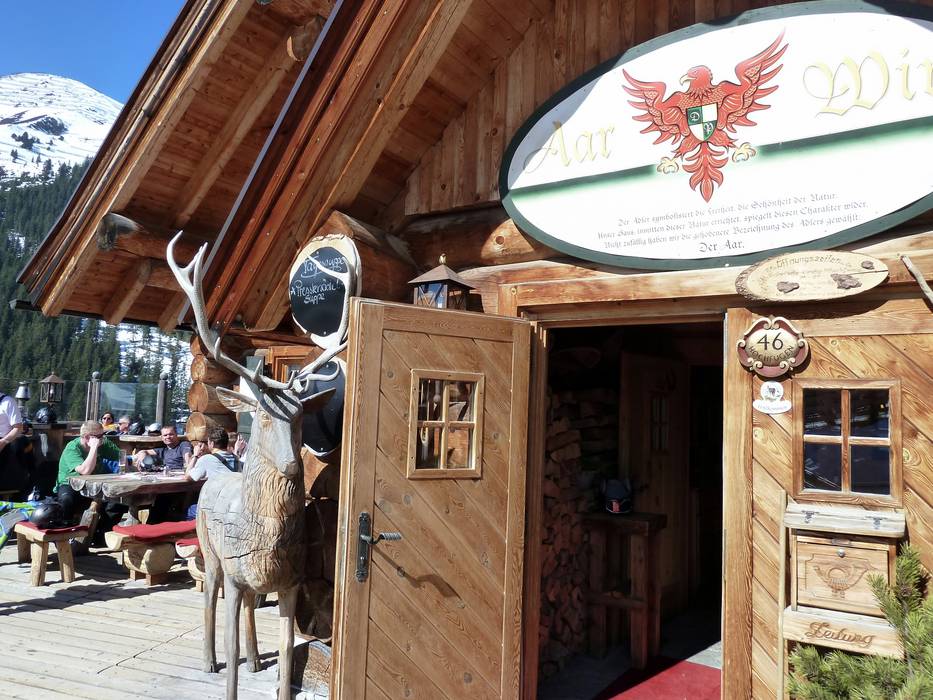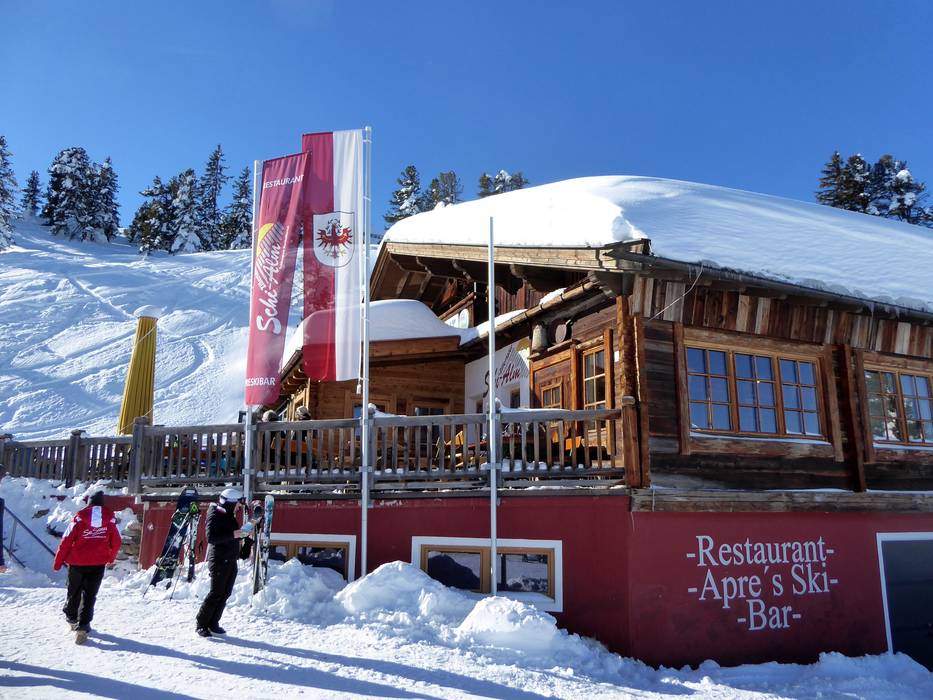Urige Skihütte mit Tiroler Schmankerln und Après-Ski Bar vor dem Haus. Bei schönem Wetter lockt die Sonnenterrasse.