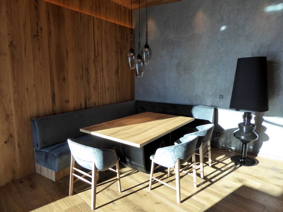 Die Suiten sind mit allem erdenklichen Komfort sehr luxuriös eingerichtet. Neben gemütlichem Wohn- und Essbereich gibt es auch eine vollwertig ausgestattete Küche mit Kühlschrank, Ceranfeld, Espresso-Maschine und vielem mehr. Das exklusive Badezimmer bietet eine Erlebnisdusche, Badewanne und ein separates WC. Highlight ist mit Sicherheit die private Sauna auf der Loggia mit Bergblick.