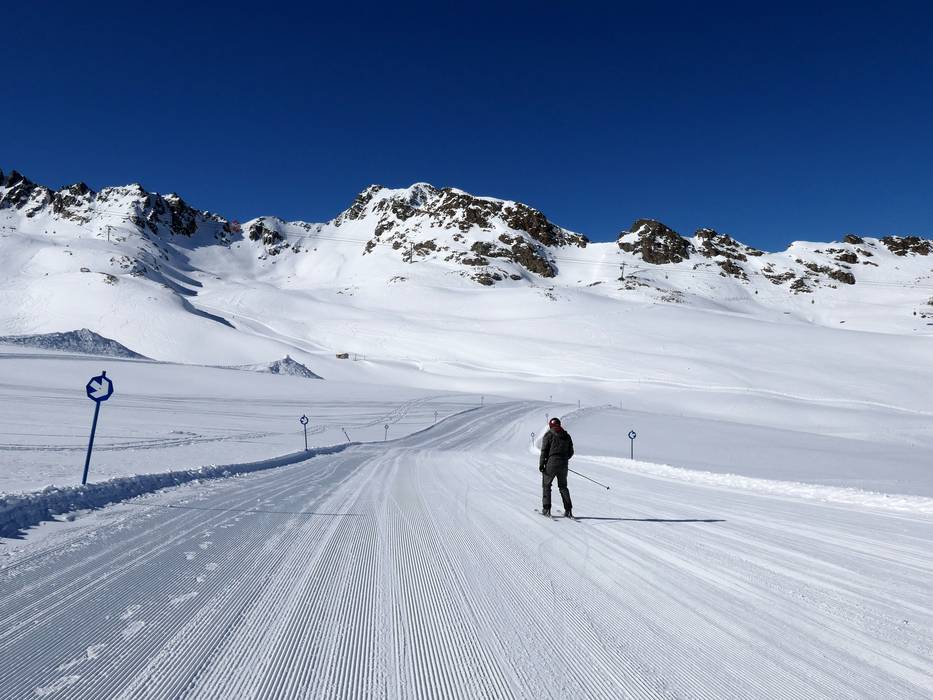 Der Kaunertaler Gletscher ist sehr gut für Anfänger geeignet. Neben dem Gletscherparkplatz auf 2.750 m Höhe befindet sich ein Übungsgelände mit Förderband. Bis auf die Weißseejochbahn bieten alle Bahnen und Lifte blaue Pisten. Man kann sogar vom höchsten Punkt des Skigebiets am Falginjoch bis hinunter zur Ochsenalmbahn 1 über leichte und breite Pisten schwingen.