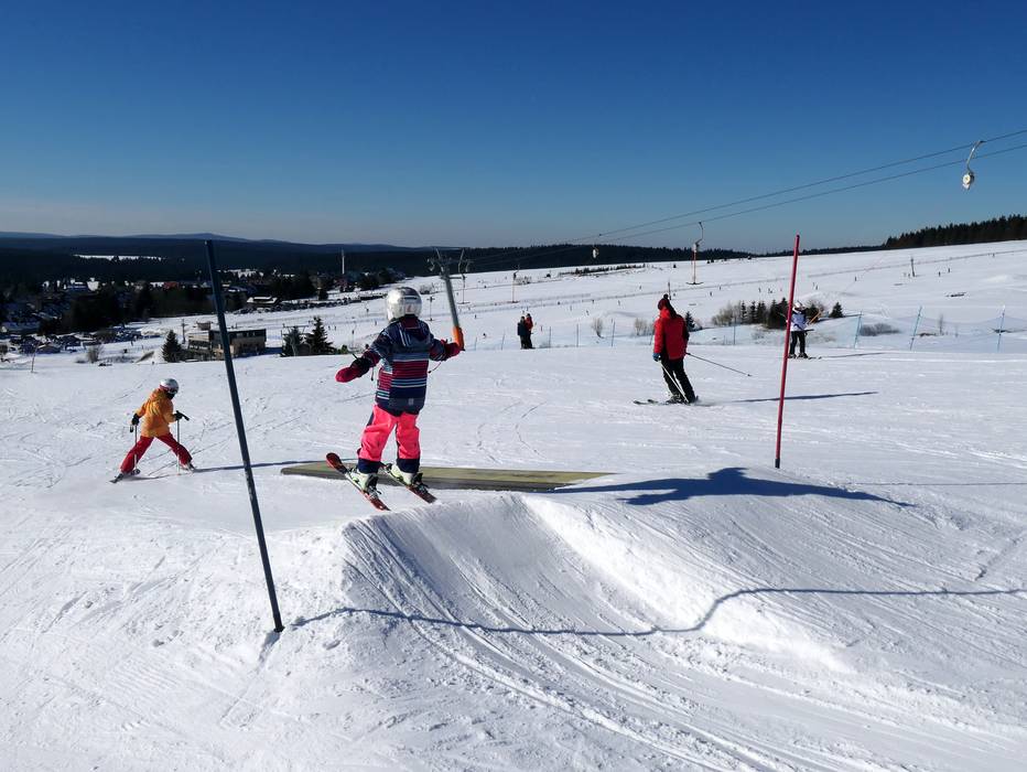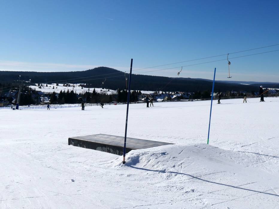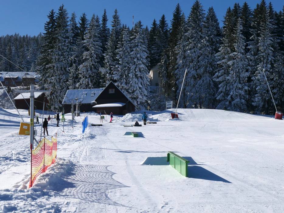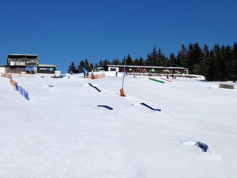Der Snowpark in Neklid ist einer der ältesten in der Region und er bietet viele Hindernisse und Kicker.
