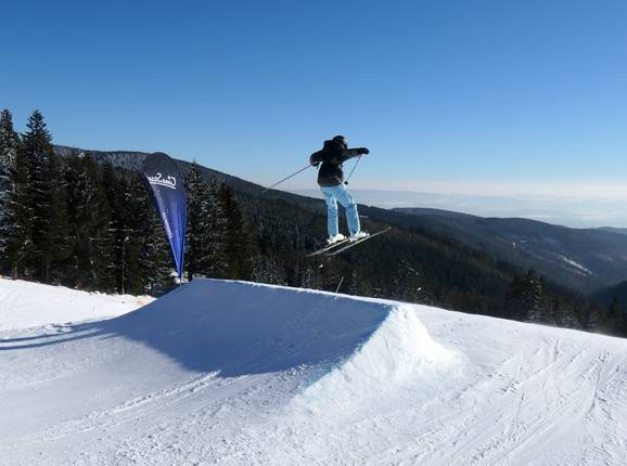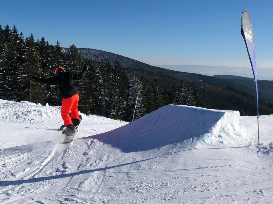 Klínovec bietet mit zwei Snowparks attraktive Möglichkeiten für Freestyler und Snowboarder.