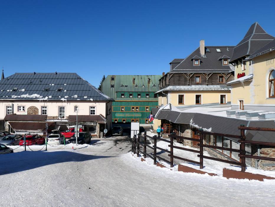 Die tschechischen Orte Loučná pod Klínovcem und Boží Dar liegen in unmittelbarer Nähe des Skigebiets. Mehrere Unterkünfte befinden sich direkt am oder sogar mitten im Skigebiet. Auf deutscher Seite ist Oberwiesenthal nur etwa 4 Kilometer entfernt. In der gesamten Region steht eine große Auswahl an Hotels, Apartments und Pensionen zur Verfügung. Auch Übernachtungen im Wohnmobil sind möglich.