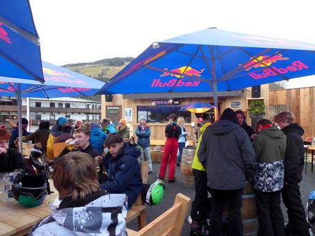 Im Gamsstadl kann man den Skitag gemütlich bei einem Glas Bier oder Champagner ausklingen lassen. Es gibt gute Musik und eine ausgelassene Stimmung. Bis zur Talstation der Fleckalmbahn sind es nur wenige Meter.