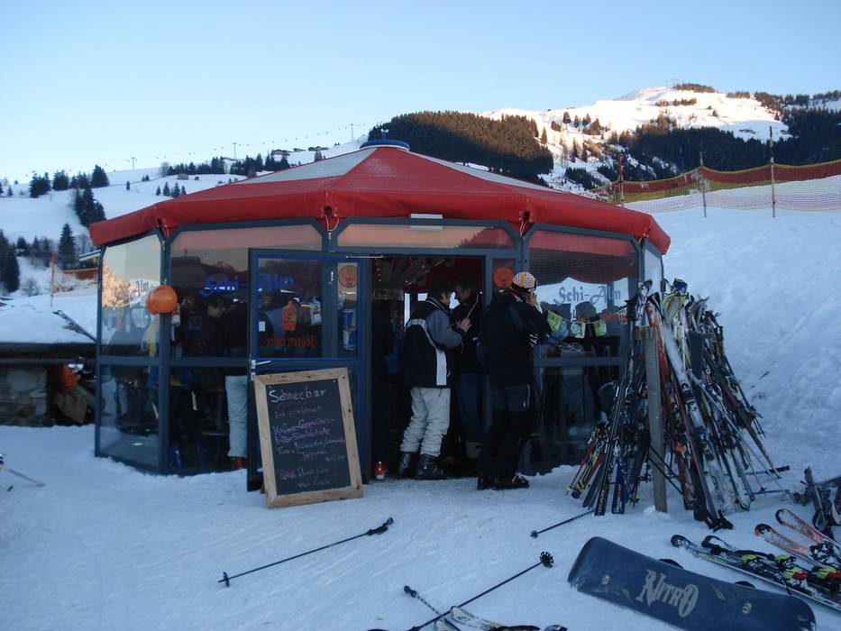 Hier legt man auf der letzten Abfahrt noch eine kurze Pause an der Eisbar ein. Man genießt einen herrlichen Blick bis zum Wilden Kaiser bei guter Musik. Hier gibt es den berühmten Spezialdrink mit dem undurchsichtigen Namen W.B.F.Z.A.R.