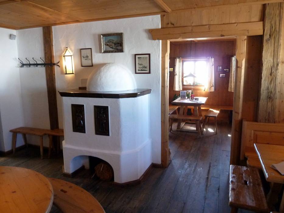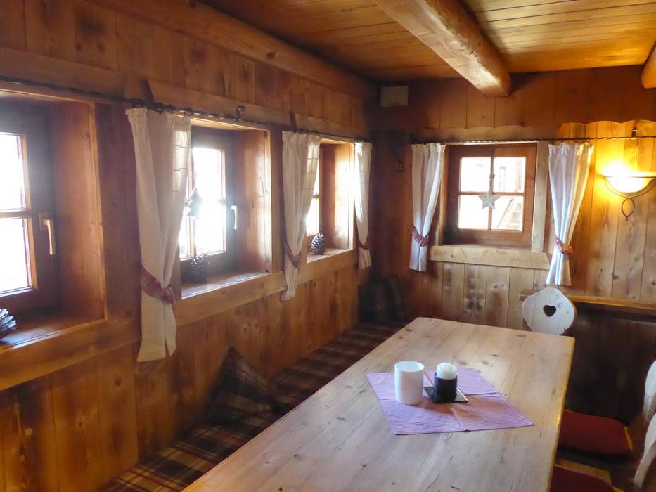 Urige Hütte mit offenem Kamin und gemütlichen Stuben. Bei schönem Wetter lockt die große Sonnenterrasse mit schönem Bergblick.