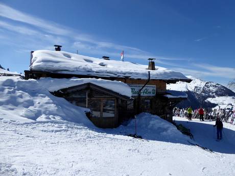 Im ganzen Skigebiet verteilt warten gemütliche Hütten auf die Skifahrer. Man findet vom Selbstbedienungsrestaurant bis zum Gourmetrestaurant alles. Zahlreiche Sonnenterrassen und gemütliche Skihütten laden zum Verweilen ein. In einigen exklusiven Hütten trifft man auch mal einen Promi, wie z.B. im Berggasthof Sonnbühel oder in der Toni Alm.