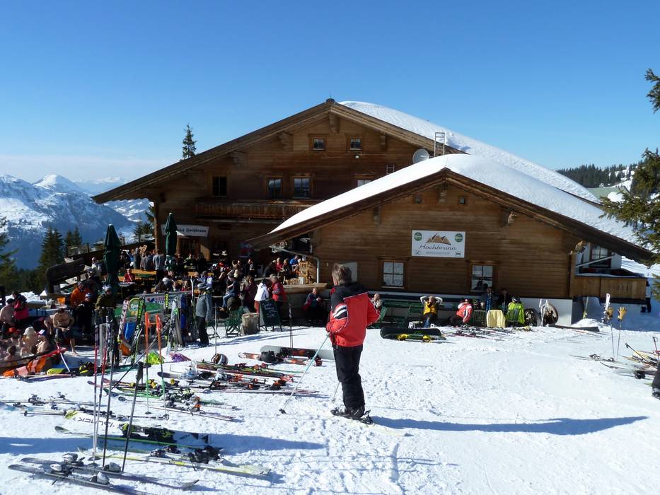 Gemütliche Skihütte mit Tiroler Ambiente und herrlichem Blick auf den Zweitausender. Große Sonnenterrasse und gepflegte Speisen und Getränke. Es wird viel auf Qualität gelegt, so kommt z.B. das Rindfleisch aus der eigenen Anguszucht "Jochberger Angus".