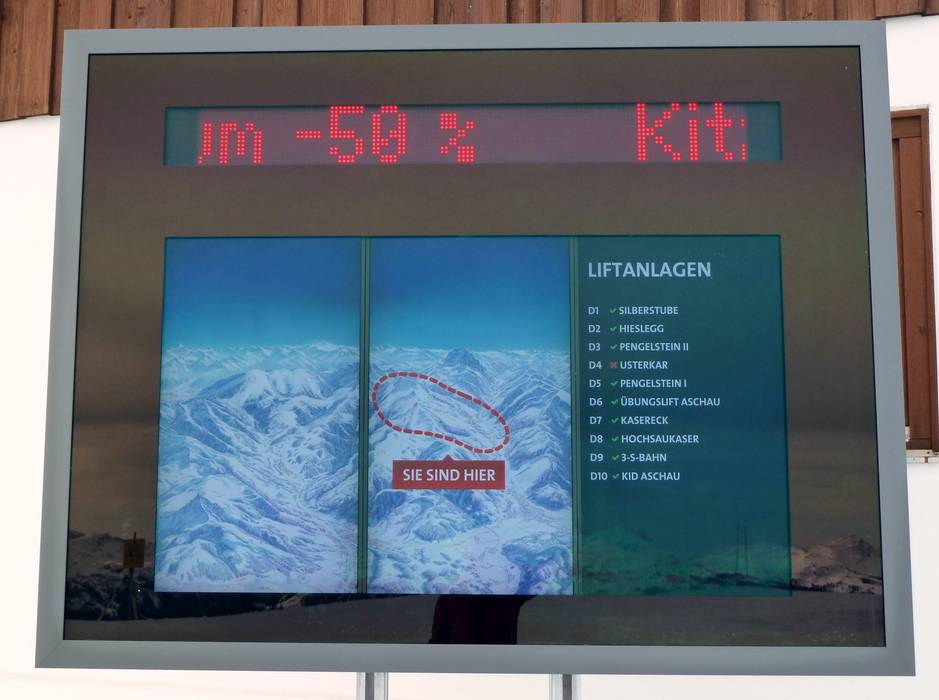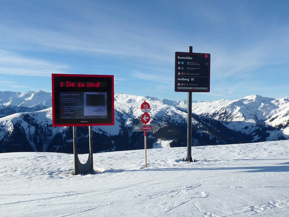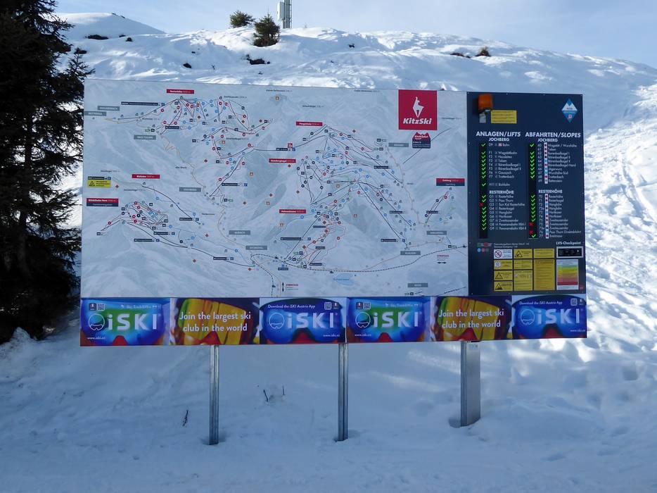 Orientierung (Pistenplan, Informationstafeln, Ausschilderung) und Sicherheit im Skigebiet KitzSki – Kitzbühel/​Kirchberg