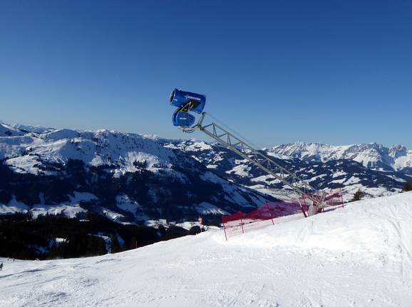 Die Saison in Kitzbühel startet meist schon im November. Der Rekord war am 14.10.2017 mit einer Piste auf der Resterhöhe. Die günstige Nordwest-Staulage am Alpenhauptkamm sorgt für sehr gute Schneesicherheit. Umfassende Beschneiung und Präparierung garantieren erstklassigen Skibetrieb. Fast alle Abfahrten sind flächendeckend mit leistungsfähigen Schneekanonen ausgestattet. Die meisten Skipisten am Hahnenkamm erstrecken sich von 1500 m bis knapp 2000 m Höhe und am Pass Thurn von 1200 m bis 2000 m. Zum Winter 2025/26 führt KitzSki eine Schneegarantie ein. Zwischen Mitte Dezember und Mitte März ist sichergestellt, dass Skifahren im Premium-Zeitraum möglich ist – ein Versprechen, das auf jahrzehntelanger Erfahrung, technischer Innovationskraft und topografischen Vorteilen basiert. Sollte dies nicht möglich sein, dann wird Geld für den Skipass anteilig zurückerstattet.