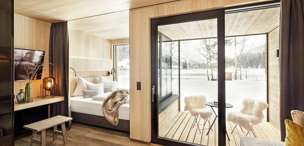 Das großzügig erweiterte Alpenhotel Kitzbühel ****s begeistert in einzigartiger Lage am Ufer des Schwarzsees bei Kitzbühel mit eigenem Seezugang am Rande des Naturschutzgebiets. Zum Hotel gehören die angrenzende Lakeside Lodge und Das Steghaus mit unglaublichem Ausblick auf den See. Das à la carte Restaurant direkt am Steg des Schwarzsees verfügt über einen ganzjährigen Loungebereich. Die Wellness-Oase auf über 1.000 m² mit Infinity Pool und See-Sauna beeindruckt. Die Architektur der modernen Zimmer ist eine gelungene Kombination aus typisch alpinen Tiroler Charakteristika und modernem Lifestyle-Touch. Natürliche Materialien, exklusive Textilien und edle heimische Hölzer sorgen für Wohlfühlatmosphäre.
