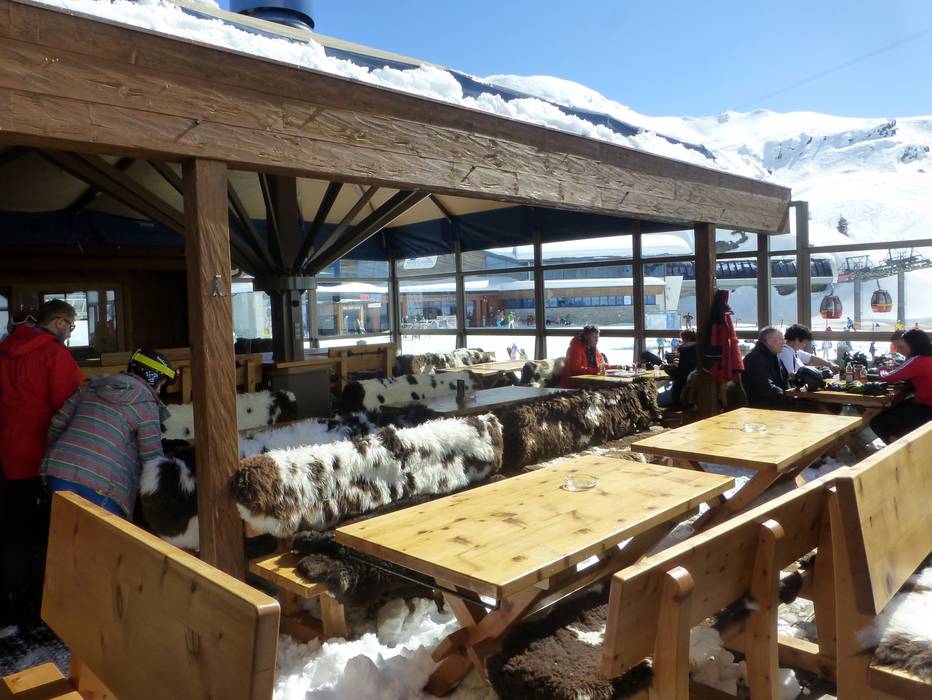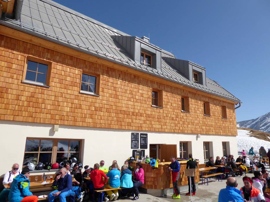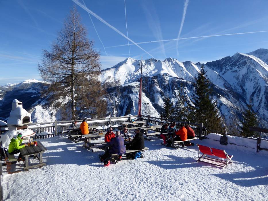 Die Sauloch Alm bietet eine große Sonnenterrasse, klassische Skifahreressen und regionale Pinzgauer Kost.