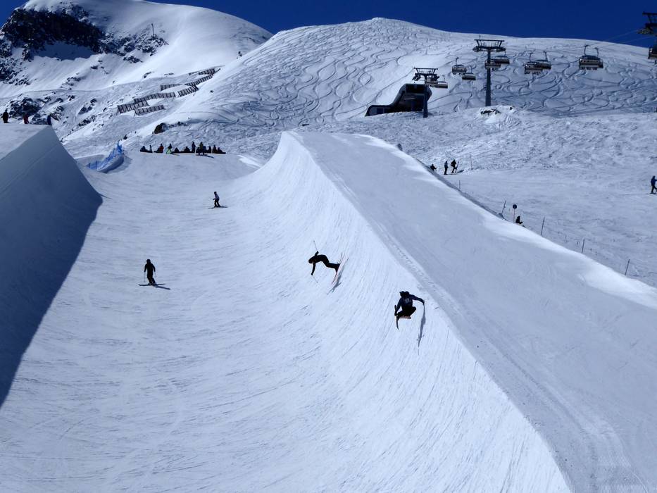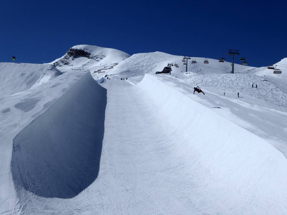 Die Superpipe am Kitzsteinhorn ist 150 m lang und hat eine Höhe von 6,5 m. Damit genügt sie den Ansprüchen der Profis. Die Superpipe wird perfekt von Ali Zehentner geshaped, dem Shaper der Olympia Superpipe 2018 in Pyeongchang. Sie befindet sich direkt beim Einstieg des Easy Parks.