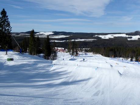 Der große Kinderbereich befindet sich am Tranantorget und umfasst ein Förderband und mehrere Tellerlifte. Hier können die Kleinen auf ganz leichten Pisten dem Wintersport nachgehen. Lustige Figuren und verschiedene Slalomstrecken runden das Angebot ab.
