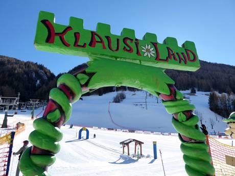 Der Klausberg ist sehr familien- und kinderfreundlich. Mit dem Klausiland, dem Klausberg-Flitzer, der Dino Fun-Line und einem perfekten Areal am Almboden bietet das Skigebiet viele Attraktionen für die ganze Familie. Kinder fahren bis 8 Jahre kostenfrei und bei jedem Skipass ist eine Gratisfahrt mit dem Klausberg-Flitzer dabei. Der Klausberg-Flitzer ist eine Rodelbahn auf Schienen (Alpine Coaster). Es werden spezielle Kinderskikurse angeboten und es gibt außerdem einen neuen Skikindergarten, welcher in Südtirol einmalig ist. Dieser wurde 2016 neu erbaut und bietet auf 250 qm alles was ein Kinderherz begehrt.