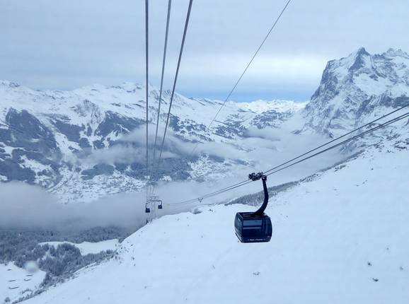 Vom Grindelwald Terminal gelangt man seit der Saison 2020/21 entweder mit dem Eiger Express (3-S-Bahn) direkt hinauf zum Eigergletscher oder mit der Männlichenbahn (10-Personen-Gondelbahn) hinauf zum Männlichen. Die beiden Bahnen sind auch unter dem Begriff V-Bahn bekannt, da sie wie ein V die beiden Skigebietsteile direkt vom Grindelwald Terminal erschließen. Wartezeiten und lange Fahrzeiten gehören nunmehr der Vergangenheit an. Zusätzlich gelangt man weiterhin von Grindelwald Grund mit der Zahnradbahn zur Kleinen Scheidegg.